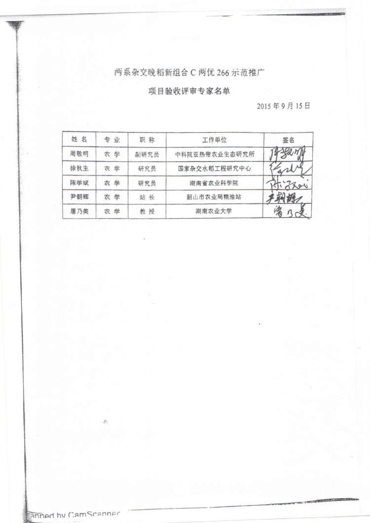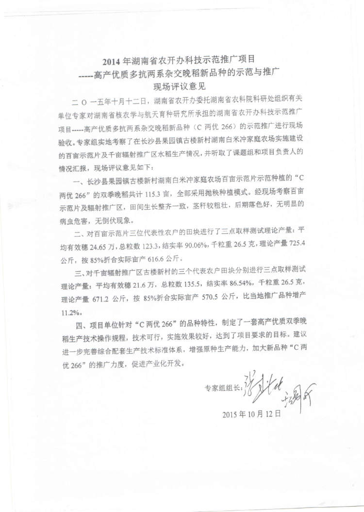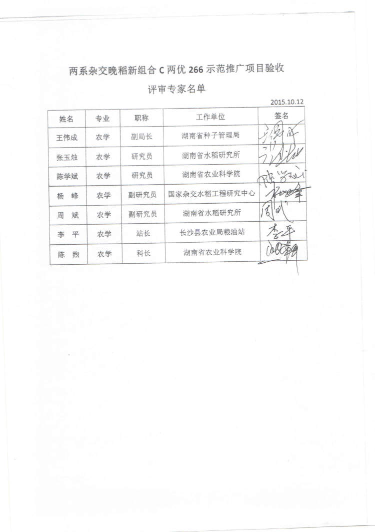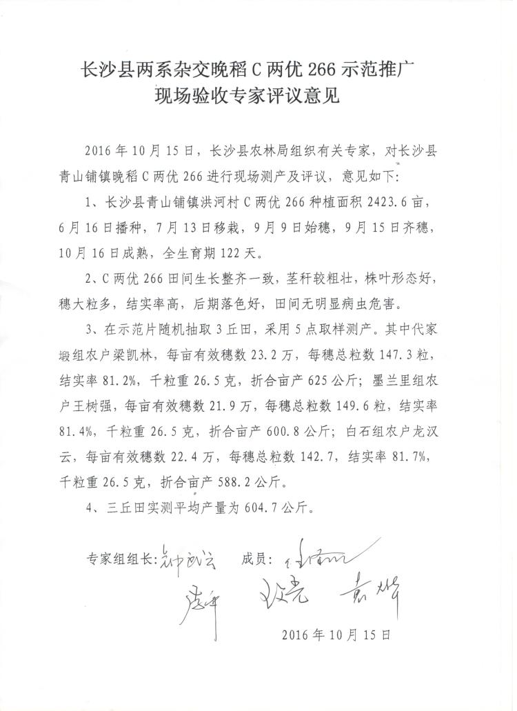 C两优266靖州、长沙县两地专家现场测产验收结果